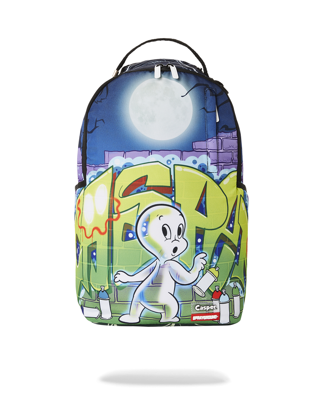 Dimensions: 18" x 6" x 11.5" • Front zipper pocket • Side pockets • Zippered Stash pocket • Separate velour sunglass compartment • Ergonomic mesh back padding • Adjustable Straps for custom sizing • Gold zippers with metal hardware • Metal "Sprayground Authentic" badge • Slide through back sleeve connects to carry-on luggage to free your hands