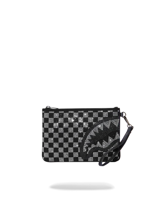 Pouch with removable wristlet strap, Handle on front panel, Zip Closure, secret stash pocket on side seam