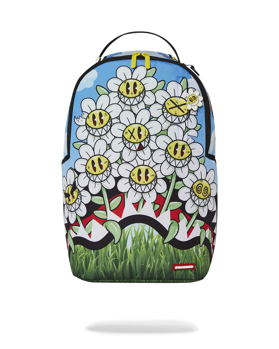 Dimensions: 18" x 6" x 11.5" • Front zipper pocket • Side pockets • Zippered Stash pocket • Separate velour sunglass compartment • Ergonomic mesh back padding • Adjustable Straps for custom sizing • Gold zippers with metal hardware • Metal "Sprayground Authentic" badge • Slide through back sleeve connects to carry-on luggage to free your hands