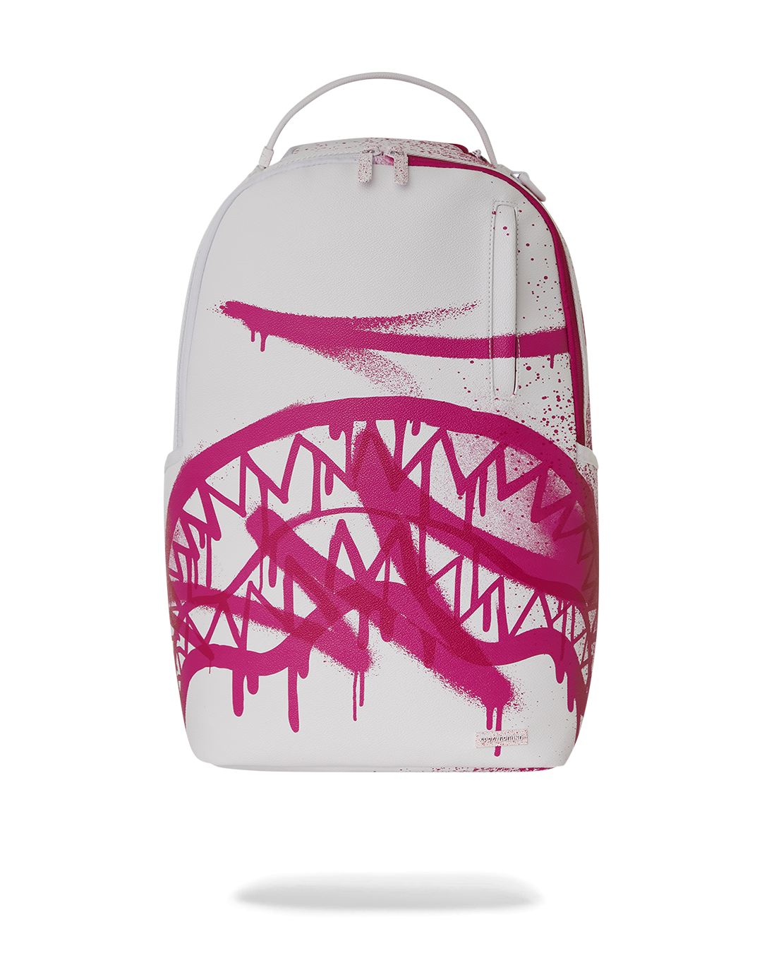 Dimensions: 18" x 6" x 11.5" • Front zipper pocket • Side pockets • Zippered Stash pocket • Separate velour sunglass compartment • Ergonomic mesh back padding • Adjustable Straps for custom sizing • Gold zippers with metal hardware • Metal "Sprayground Authentic" badge • Slide through back sleeve connects to carry-on luggage to free your hands