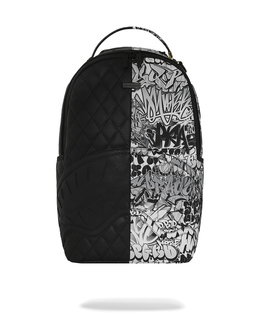 Dimensions: 18" x 6" x 11.5" • Front zipper pocket • Side pockets • Zippered Stash pocket • Separate velour sunglass compartment • Ergonomic mesh back padding • Adjustable Straps for custom sizing • Gold zippers with metal hardware • Metal "Sprayground Authentic" badge • Slide through back sleeve connects to carry-on luggage to free your hands