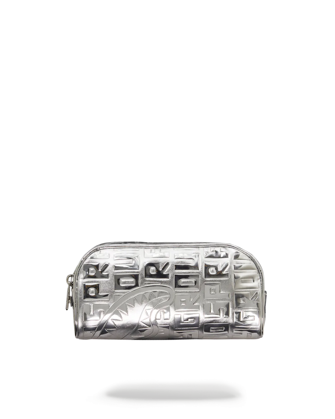 Embossed Sprayground logo on Metallic Silver PU with mirror-like shine