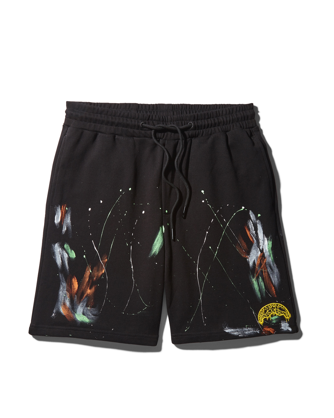 MATERIAL COMPOSITION: 70% Cotton 30% Polyester  FEATURES: Cinched waistband with encased elastic Waistband drawcord   Graffiti print...