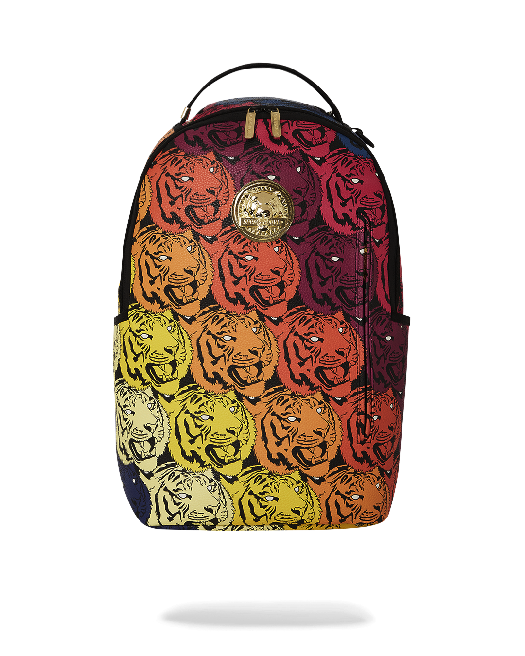 Dimensions: 18" x 6" x 11.5" • Front zipper pocket • Side pockets • Zippered Stash pocket • Separate velour sunglass compartment • Ergonomic mesh back padding • Adjustable Straps for custom sizing • Gold zippers with metal hardware • Metal "Sprayground Authentic" badge • Slide through back sleeve connects to carry-on luggage to free your hands