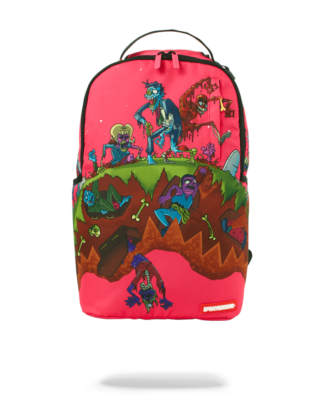 Dimensions: 18" x 6" x 11.5" •Front zipper pocket • Side pockets • Zippered Stash pocket • Ergonomic mesh back padding• Adjustable Straps for custom sizing • Nylon Zippers with Metal Hardware • Metal "Sprayground Authentic" badge •Slide through back sleeve connects to Carry on luggage to free your hands